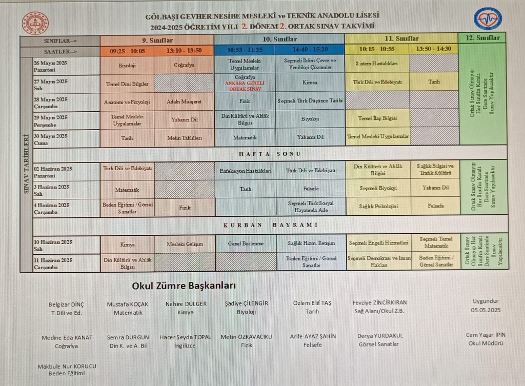 2024-2025 2. Dönem 2. Ortak Sınavlarımız 26 Mayıs - 11 Haziran 2025 Tarihleri Arasında Yapılacaktır.