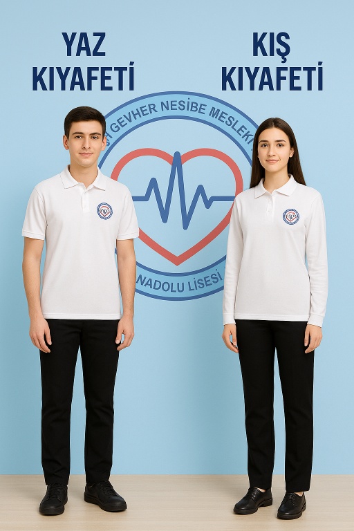 Sözkonusu kararla okulumuz öğrencilerinin giyecekleri okul kıyafetleri beyaz yakalı lakost tişört, siyah kanvas pantolon ya da kumaş pantolon şeklinde belirlenmiştir.