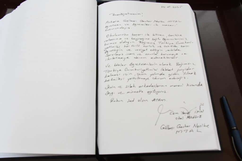 2024-2025 eğitim öğretim yılında mezun olacak 12. Sınıf öğrencilerimizle birlikte Anıtkabir' i ziyaret ettik. Başöğretmen Mustafa Kemal Atatürk' e bir kez daha minnetlerimizi sunduk. Okul Müdürümüz Cem Yaşar İPİN, Anıtkabir' de bizim için yapılan resmi törenle birlikte mozoleye çelenk koydu. Misak-ı Milli Kulesi'nde, Anıtkabir özel defterine duygu ve düşüncelerini yazdı. Atatürk'ün geleceği emanet ettiği gençler, mezuniyet cübbeleriyle Ata'nın huzurunda olmaktan gurur duydular.